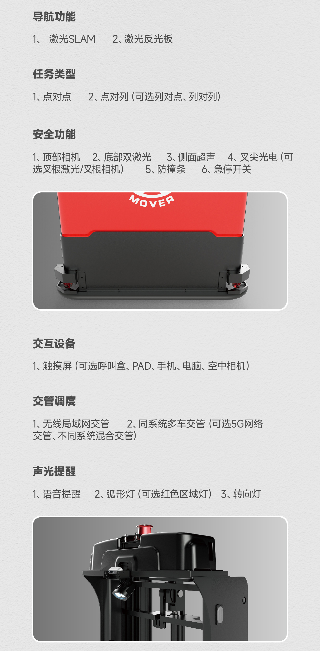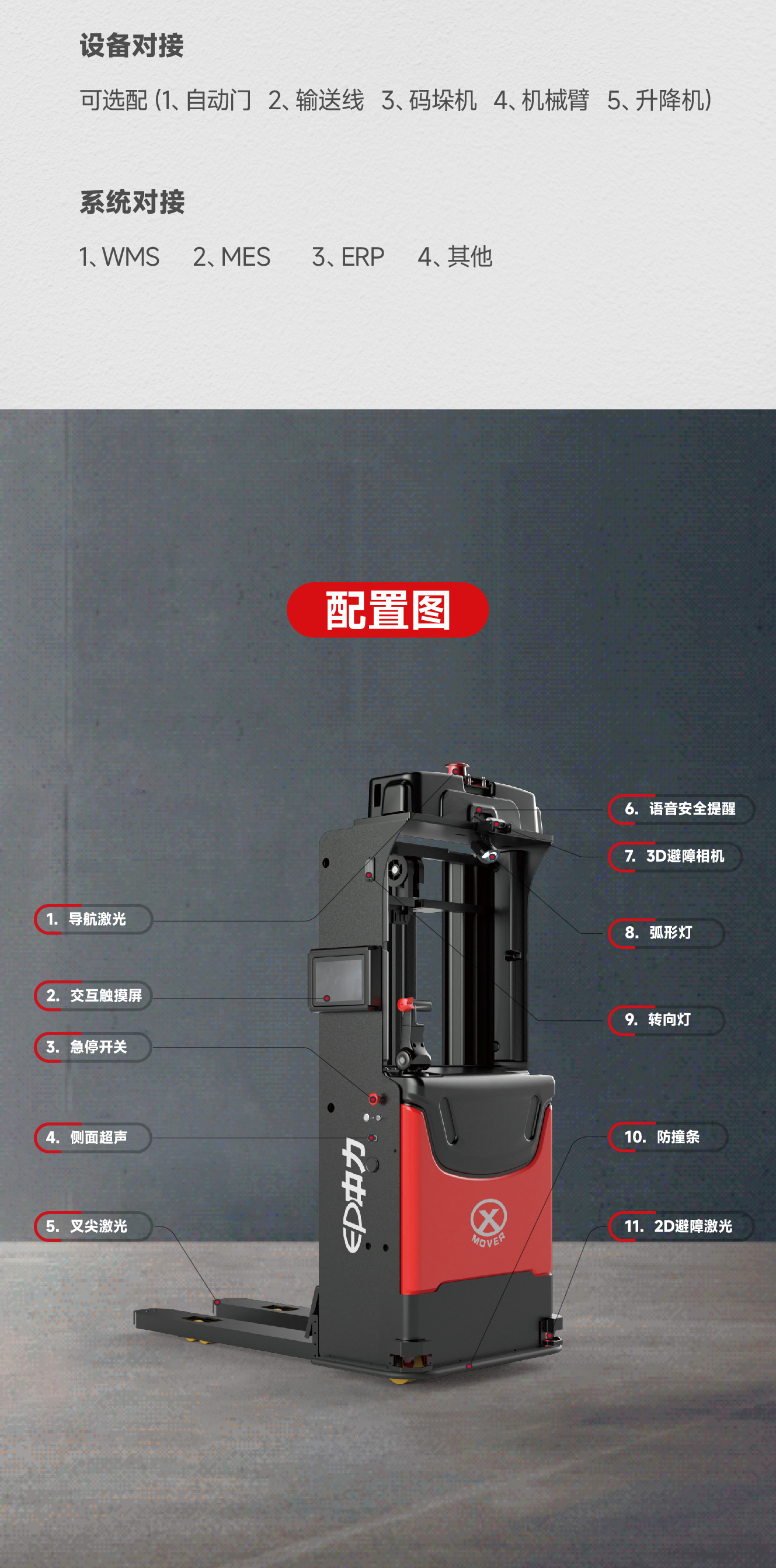 | 10.23 | 安全防护① | 前方安全防护 底部270°避障激光 顶部向下3D相机 | |
